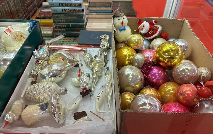 Kako nam dolazi Božić, vrijeme je za razmišljanje o božićnim dekoracijama. Na štandu s knjigama u jednom od paviljona ima i nekoliko kutija retro božićnih ukrasa. Mogli bi kod nekih pobuditi nostalgiju!