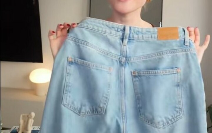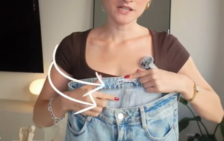 Kada držite hlače u ruci, prednji dio mora biti niže od stražnjeg. Ne bi smjelo biti ravno jer će tada hlače čudno stajati. Dakle, gornji rub traperica na stražnjici trebao bi biti viši od gornjeg ruba trbuha, jer tada vaša stražnjica ima više mjesta u hlačama.